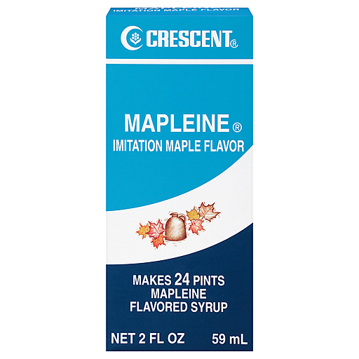 Crescent Mapleine Imitation Maple Flavor. To make Instant Syrup, pour 1 cup boiling water over 2 cups sugar. Add 1/2 tsp. Mapleine and stir. Makes 2-1/4 cups. To make Thick Syrup, combine 2 tbsp. water, 1/4 cup sugar, 1-1/2 cups corn syrup, 1/2 tsp. Mapleine. Boil 2 minutes. Mixture will thicken as it cools. Makes 1 pint. This product also flavors cakes, breads, muffins and cookies.